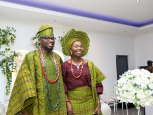 Prince Adejugbe made a grand entrance in regal green aso-oke, later switching to a sleek black blazer suit. His wife, Enitan, sparkled in a dazzling black gown as the couple became the cynosure of all eyes during their graceful dance steps.